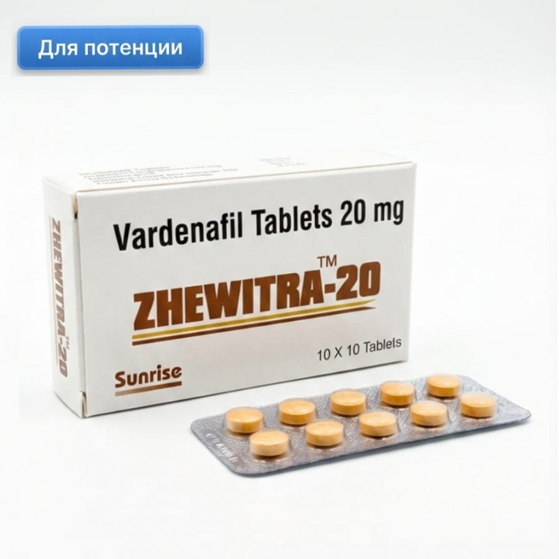 Zhewitra 20 — дженерик оригінального препарату Левітра, що містить 20 мг варденафілу. Виробник — Sunrise Remedies Pvt. Ltd. (Індія), компанія з сертифікацією GMP (Good Manufacturing Practice).