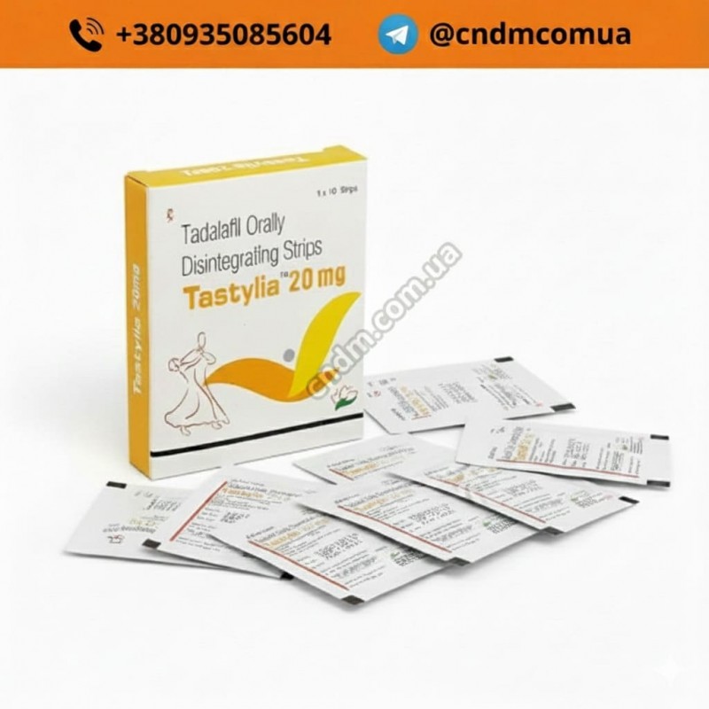 Tastylia 20 mg Strips — це інноваційна форма тадалафілу у вигляді тонких розчинних смужок. Кожна смужка містить 20 мг діючої речовини — стандартної ситуативної дози. Препарат призначений для лікування еректильної дисфункції (ЕД). Головна перевага цієї форми — надзвичайно швидке всмоктування тадалафілу через слизову оболонку рота. Смужка починає діяти швидше, ніж звичайні таблетки, а ефект триває до 36 годин, завдяки чому тадалафіл називають «таблеткою вихідного дня». Прийом Tastylia не потребує води, що забезпечує максимальну дискретність та зручність.